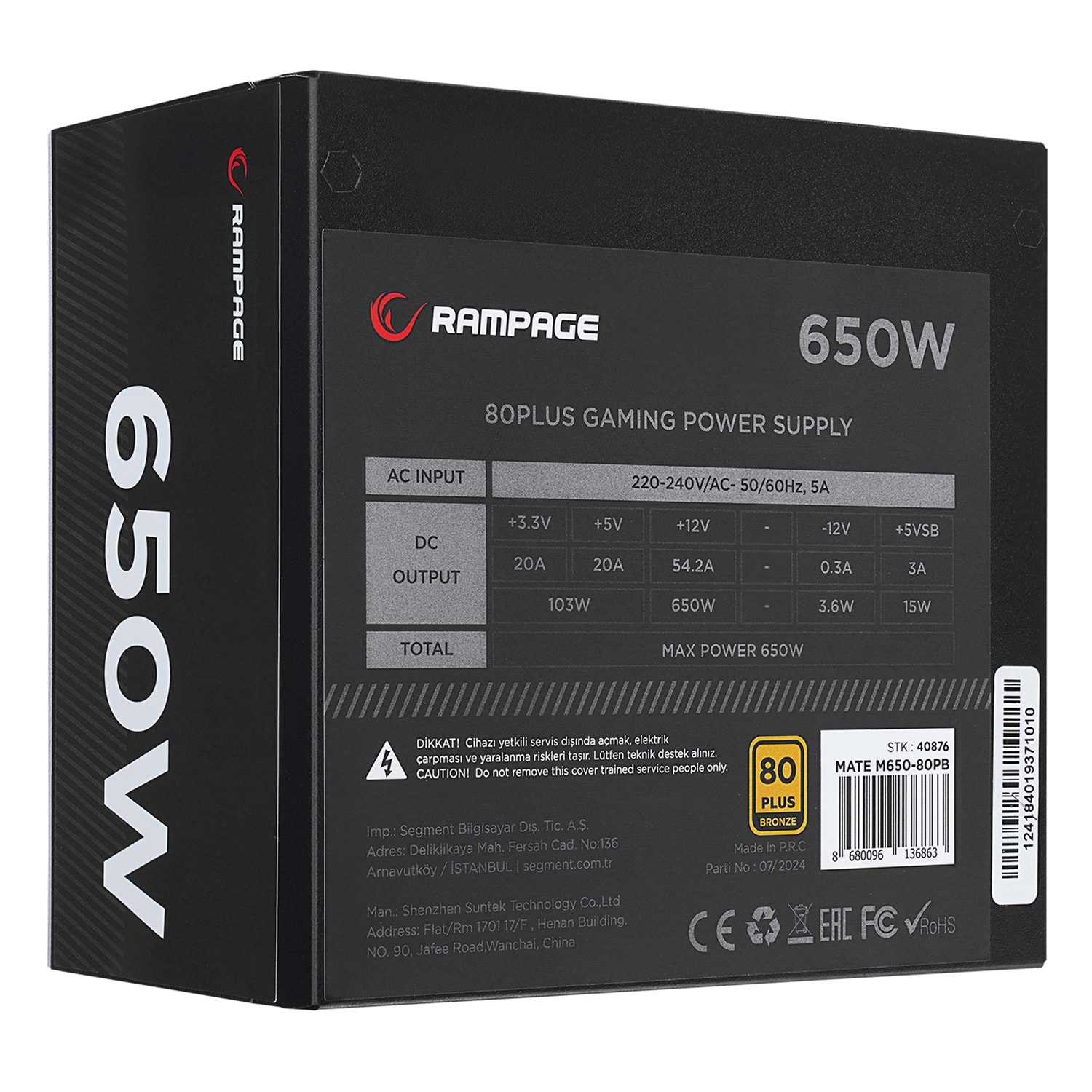 Rampage MATE M650-80PB 650W 12cm Fan Full Modular 80 Plus Bronze Aktif PFC Beyaz Power Supply