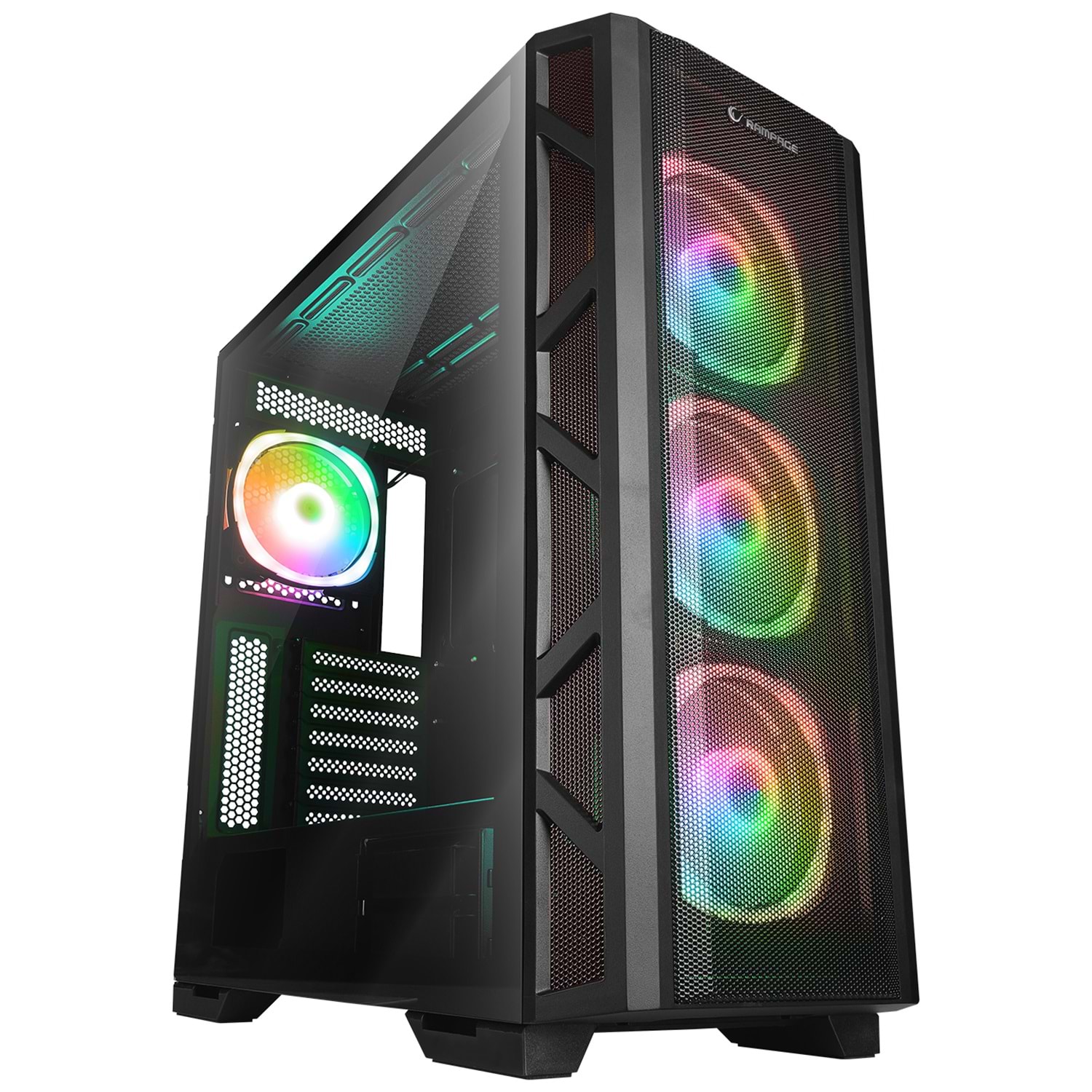 Rampage MASTER Mesh+Temperli Cam Dikey VGA Tutucu 4*ARGB Fan+Hub E-ATX Gaming Oyuncu Kasası
