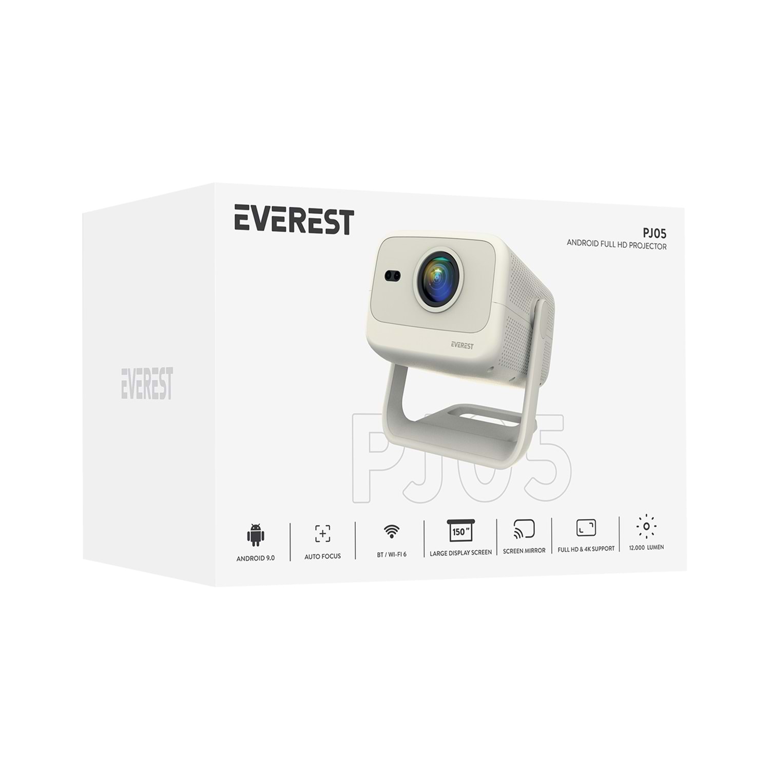 Everest PJ05 Adonis Krem/ Beyaz Otomatik Odaklama 1920*1080P 12.000 Lümen Android 9.0 4K Destekli Full HD Projeksiyon Cihazı