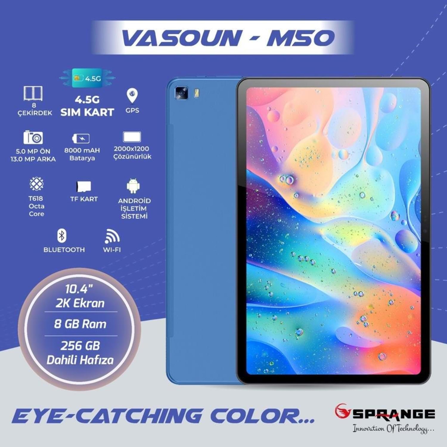 Vasoun M50 10.4" 2K Ekran | 4.5g Sim Kart | Gps | 8gbRam | 8 Çekirdek | 256gb Hafıza | 2023 Sürüm Tablet