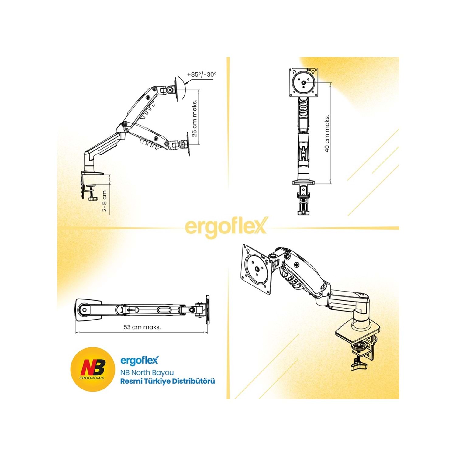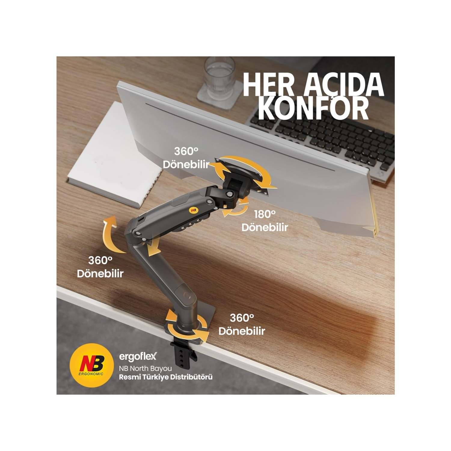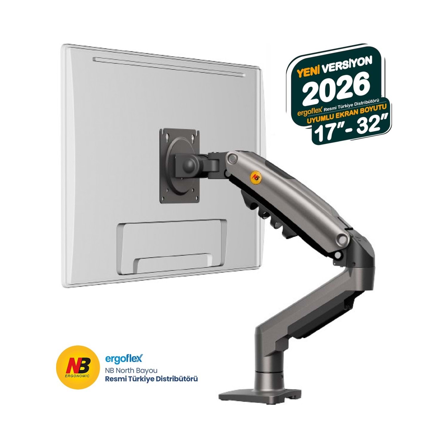 NB North Bayou NB-F80 1 Adet Monitör Takılabilen 17"-30" Amortisörlü, 360° 2-9KG Masa Monte Monitör Kolu (NB-F80)