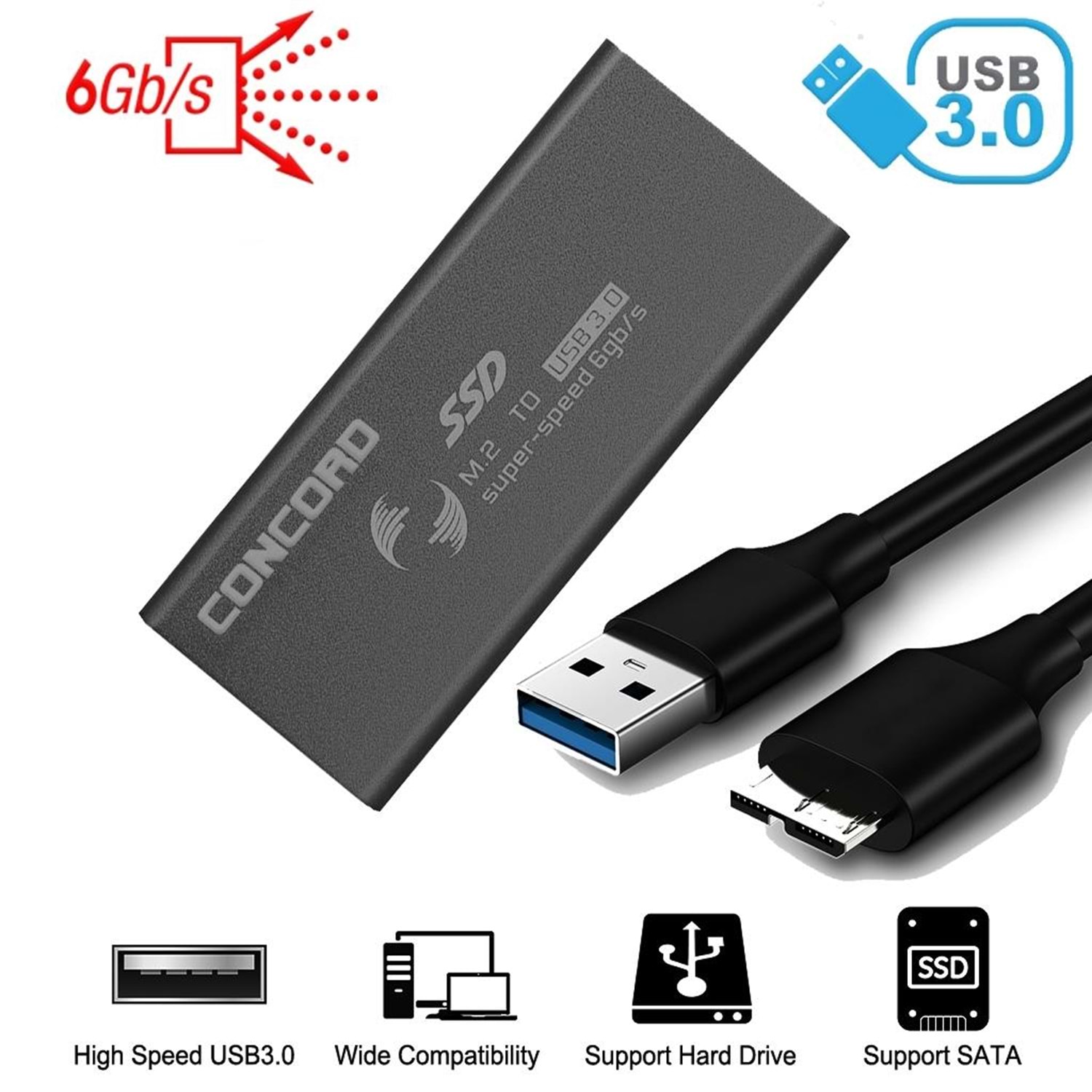 Concord C-898 Siyah USB3.0 M.2 NGFF SATA Disk Kutusu DSEM2