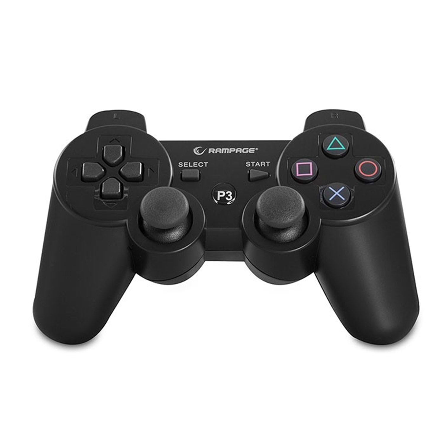 Rampage SG-RPS3 Siyah Play-station PS3 Bluetooth Çift Titreşimli Joypad ; Oyun konsol tipi bir kontrolcü olan Rampage SG-RPS3'in ön tarafında işaret parmaklarınızla erişebileceğiniz hem sağ hem de sol tarafta 2'şer aksiyon tuşu yer almaktadır. Oynadığınız oyuna göre ayarlar'dan istediğiniz fonkisyonu atayabilir ve daha rahat bir oyun deneyimine kavuşabilirsiniz. Elinizin içini tam kavrayan yapısı, parmaklarınız ile simetrik d-pad tuşları ve kaliteli dış kaplaması ile oyun zevkinizi katlayacak ergonomik yapıda dizayn edilmiştir.