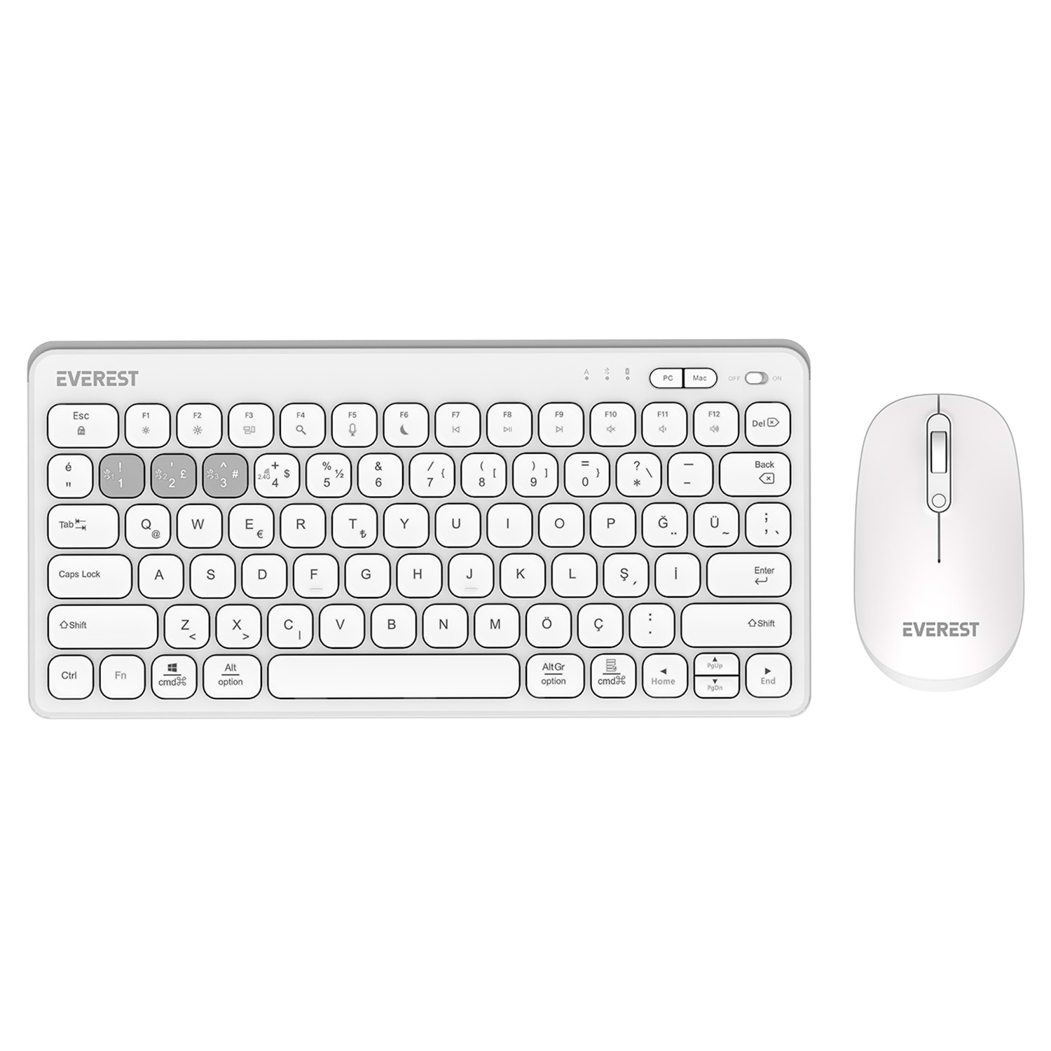 Everest LUMI KM-BT903 Beyaz 3in1 3 BT + 2.4 1600dpi Ultra İnce Q 4 Cihaz Bağlantılı Scissors Kablosuz Klavye + Mouse Set