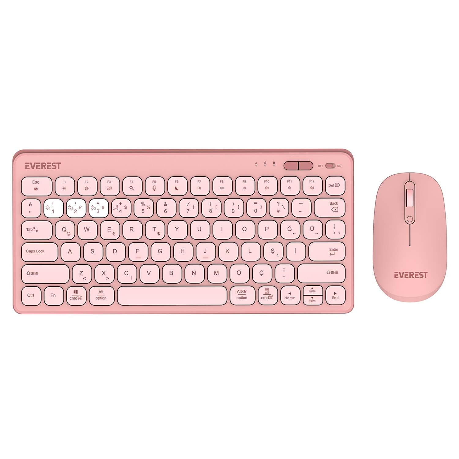 Everest LUMI KM-BT903 Pembe 3in1 3 BT + 2.4 1600dpi Ultra İnce Q 4 Cihaz Bağlantılı Scissors Kablosuz Klavye + Mouse Set
