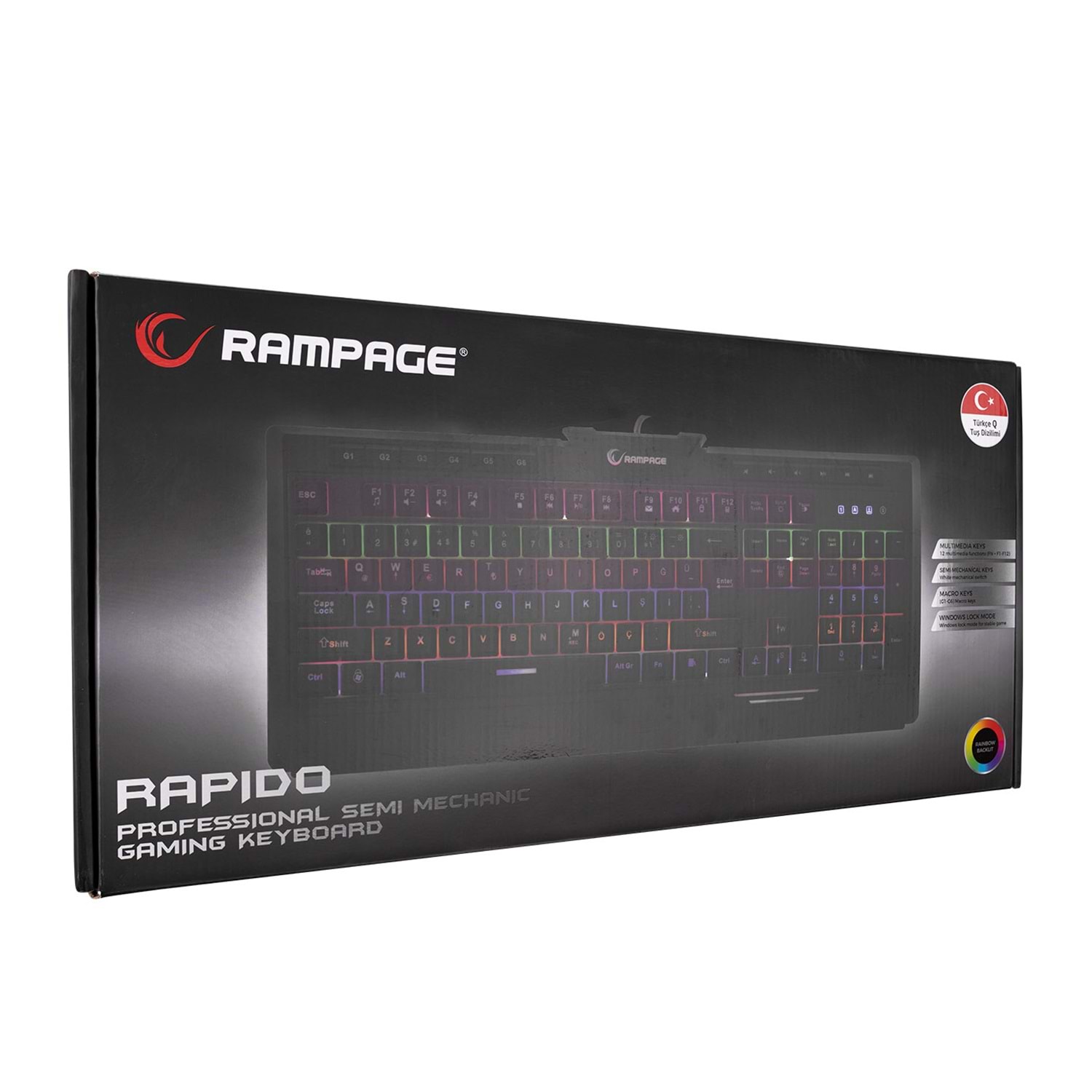 Rampage RAPIDO PLUS Semi Mechanical Sese Duyarlı Rainbow Işıklı Makrolu Gaming Klavye