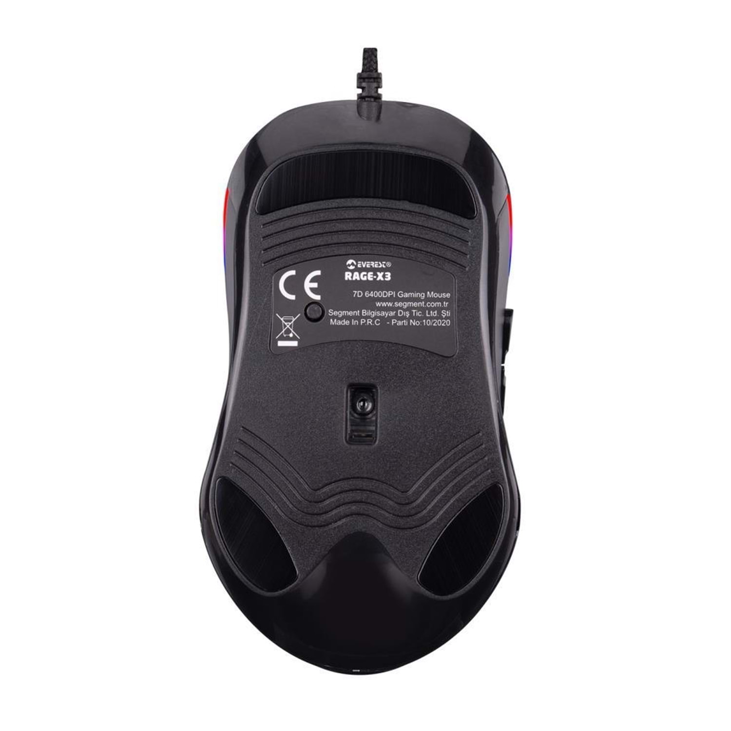 Everest RAGE-X3 Usb Siyah 7 Tuşlu Ledli 6400 dpi Gaming Oyuncu Mouse