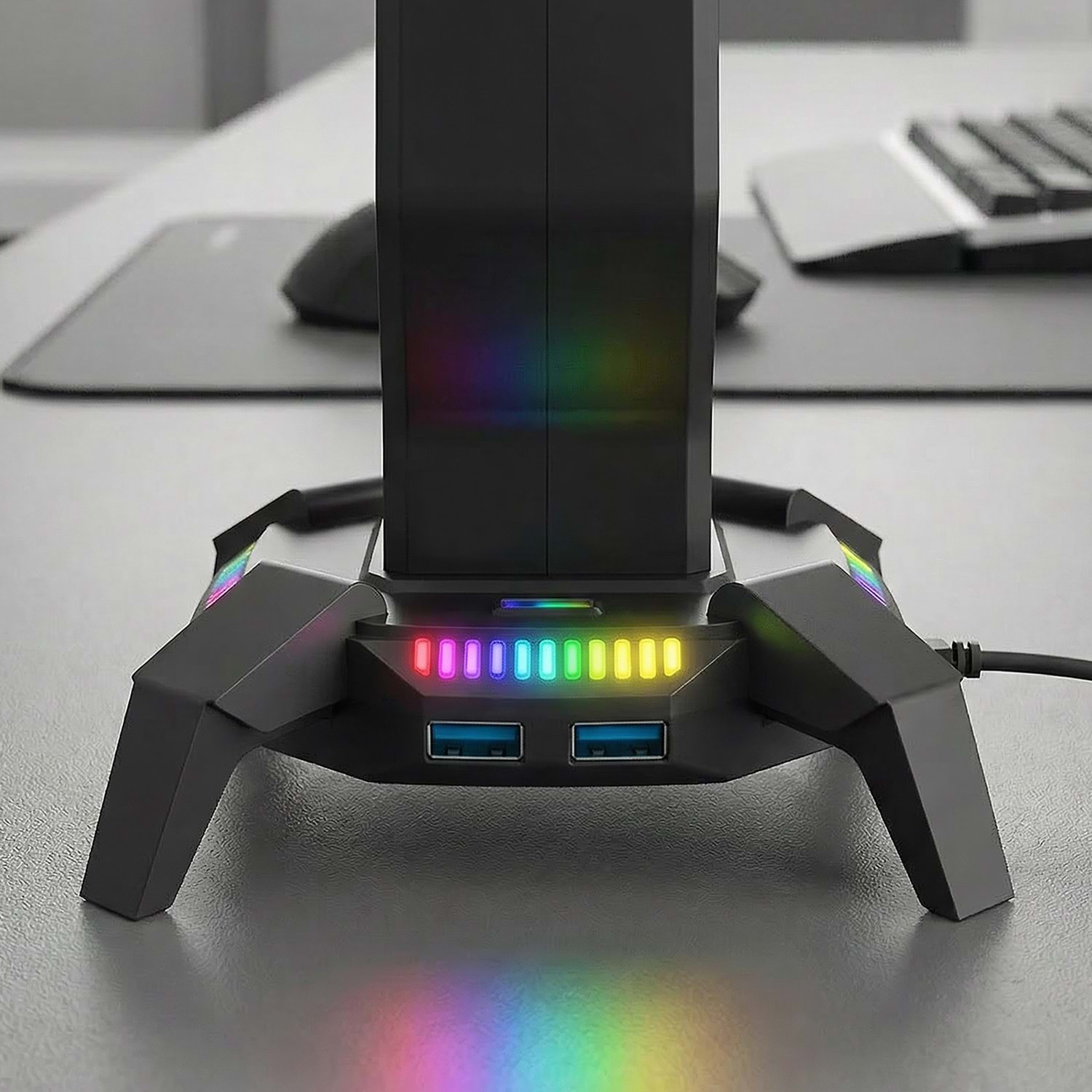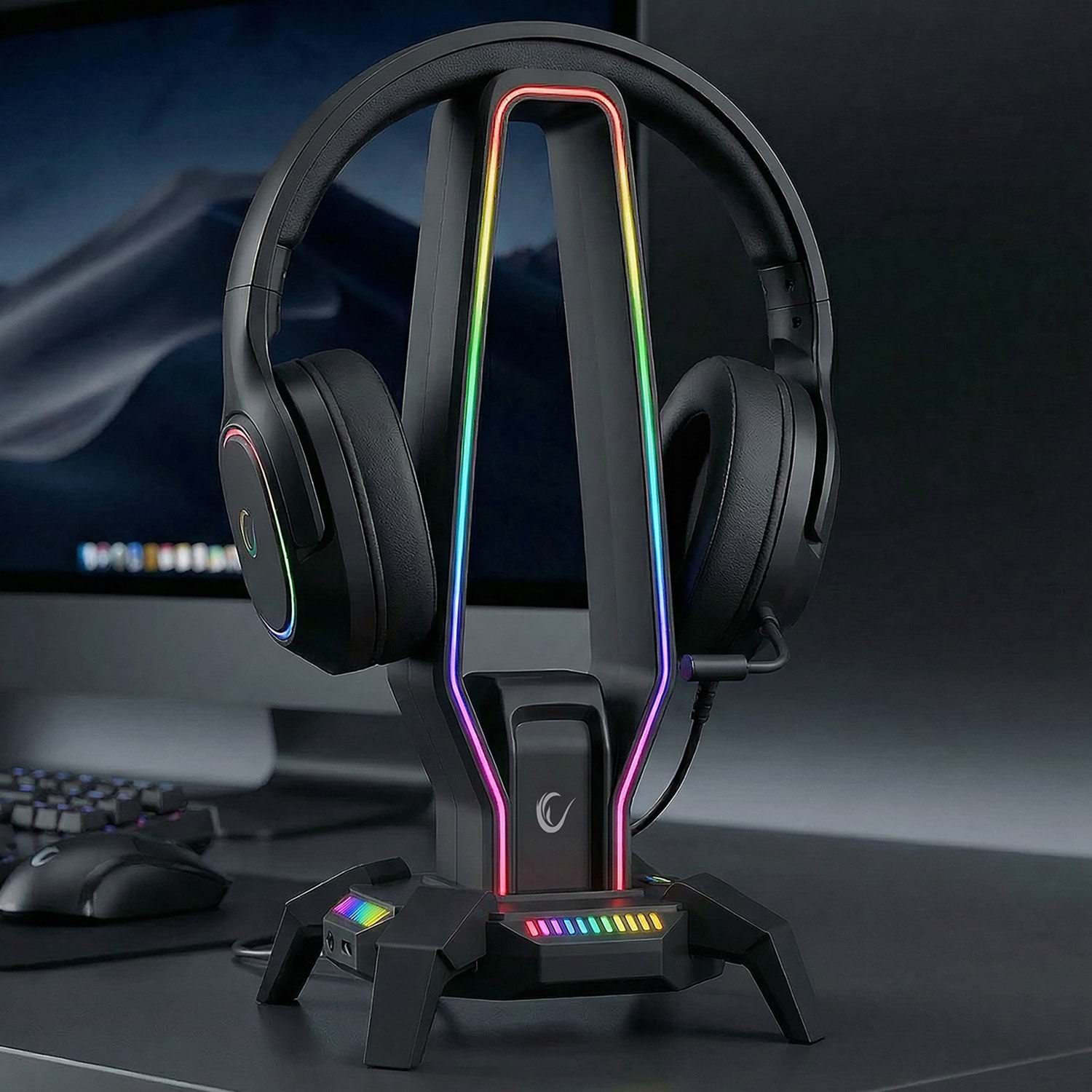 Rampage RM-H27 RGB Işıklı 3*USB 1*Type-C Siyah 1*3.5mm Port Kulaklık Standı