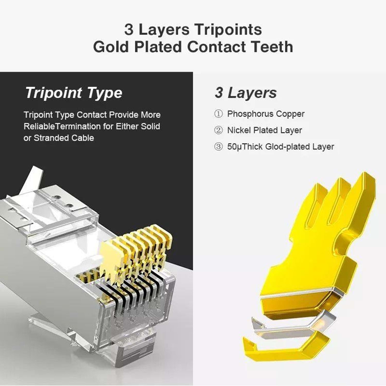 CAT 7 CAT7 FTP/UTP RJ45 METAL Konnektör RJ45 Metal Ethernet Konnektörü 10Gbps Ethernet Uyumlu CAT7 SSTP / FTP Kabloya Uygun FTP Kabloya Uygun CAT7 U/FTP & S/FTP ve CAT6A S/FTP & U/FTP tipi kabloları için uygundur. PAKET İÇİNDE KABLO AYRAÇLARI MEVCUTTUR
