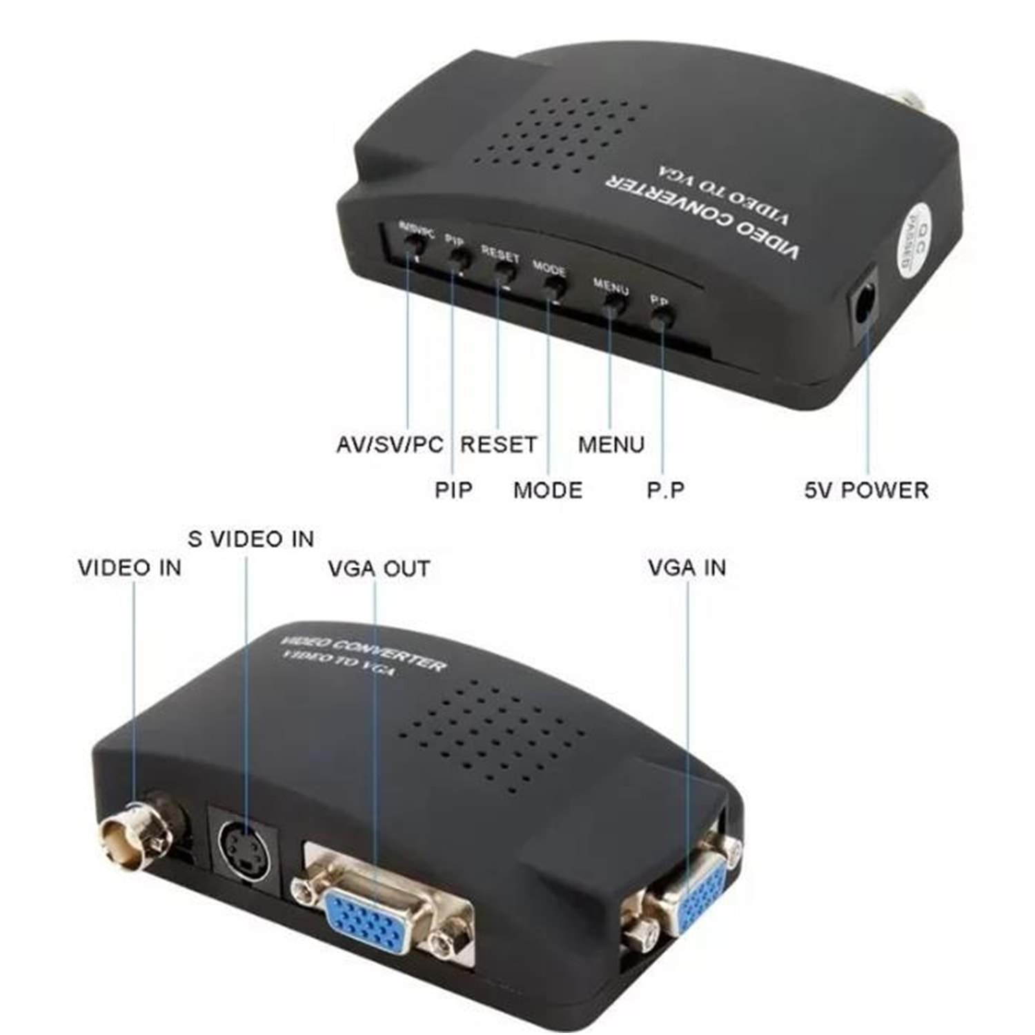 AV s-video BNC / RCA kompozit Video PC dizüstü VGA TV Video dönüştürücü adaptör kutusu