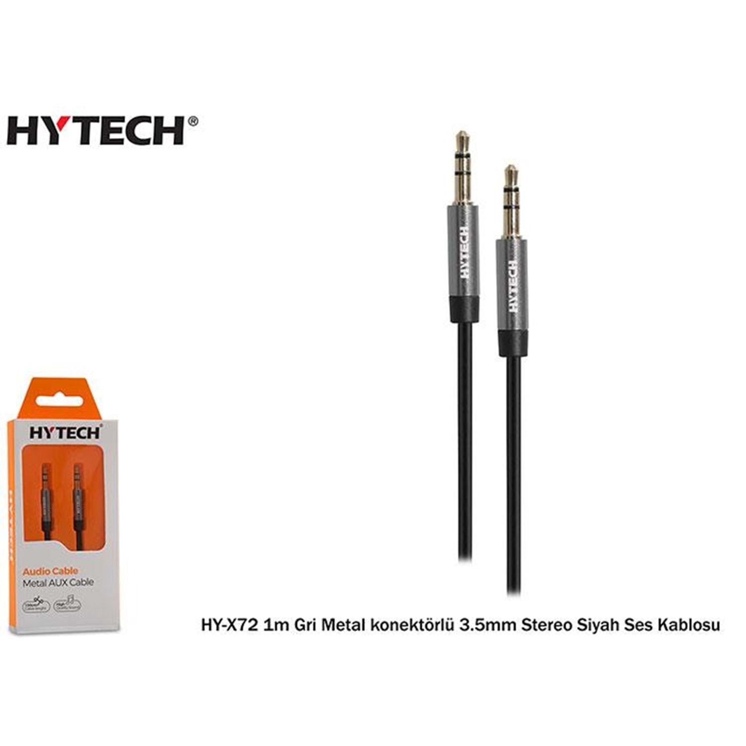 Hytech HY-X72 1m Gri Metal konektörlü 3.5mm Stereo Siyah Ses Kablosu