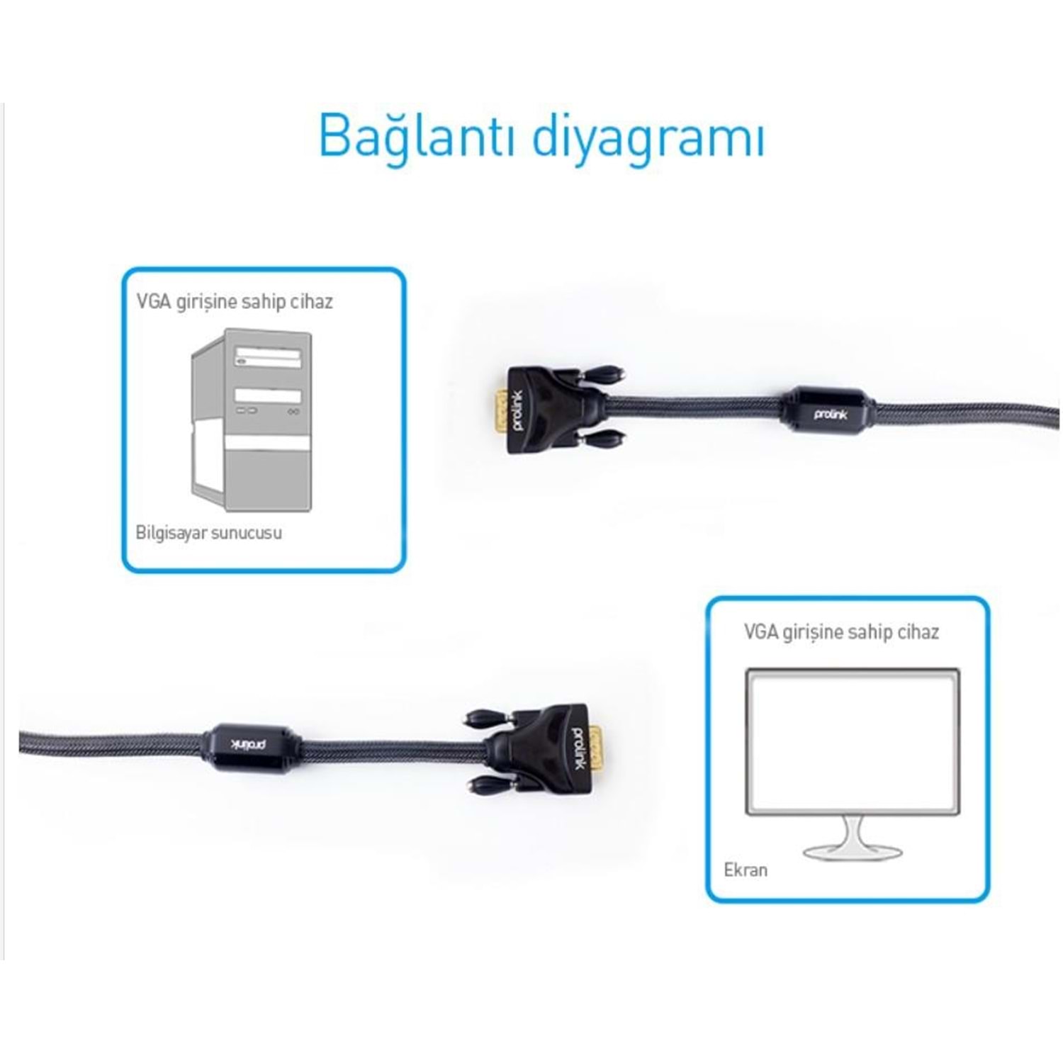 Prolink PR-V001 1.5 Metre Vga Kablo, EMI Filtreli Altın UÇ Örgülü VGA Kablo