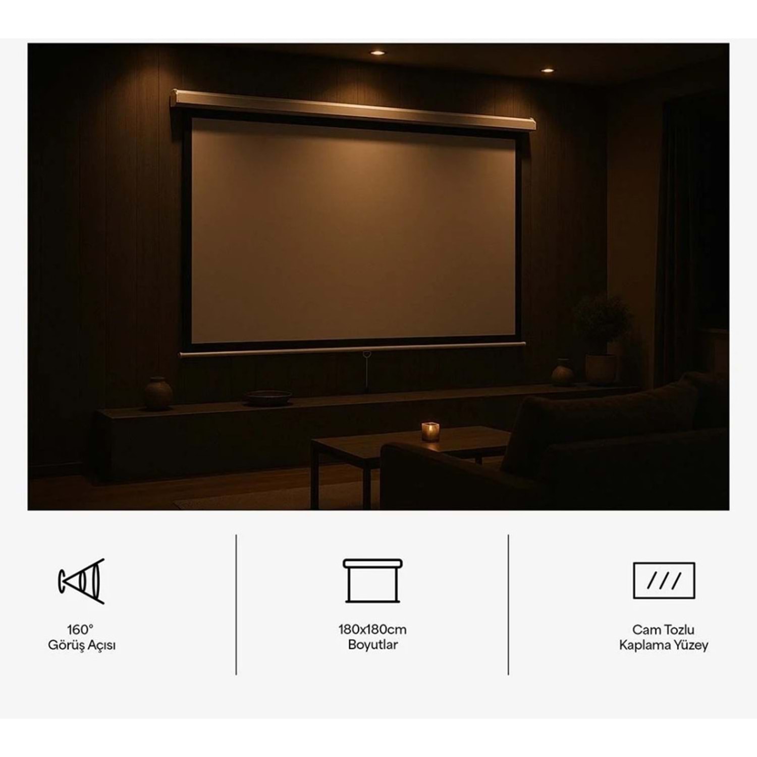 Everest PSC-180 180x180 cm Cam Tozlu Projeksiyon Perdesi
