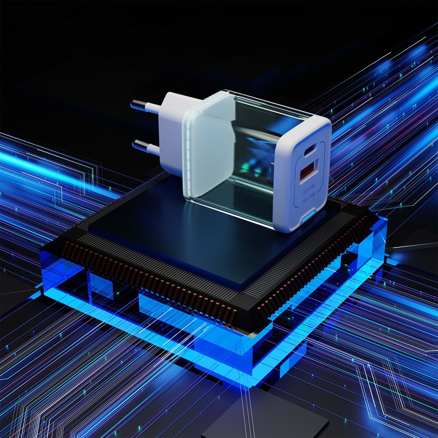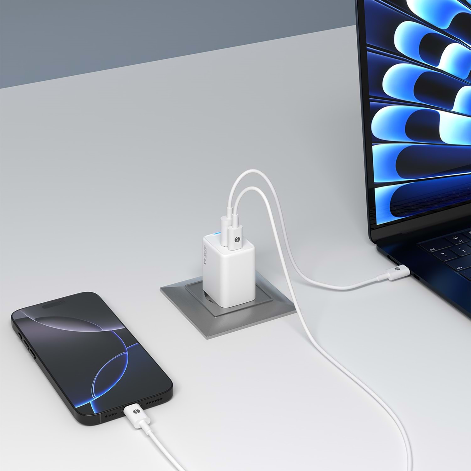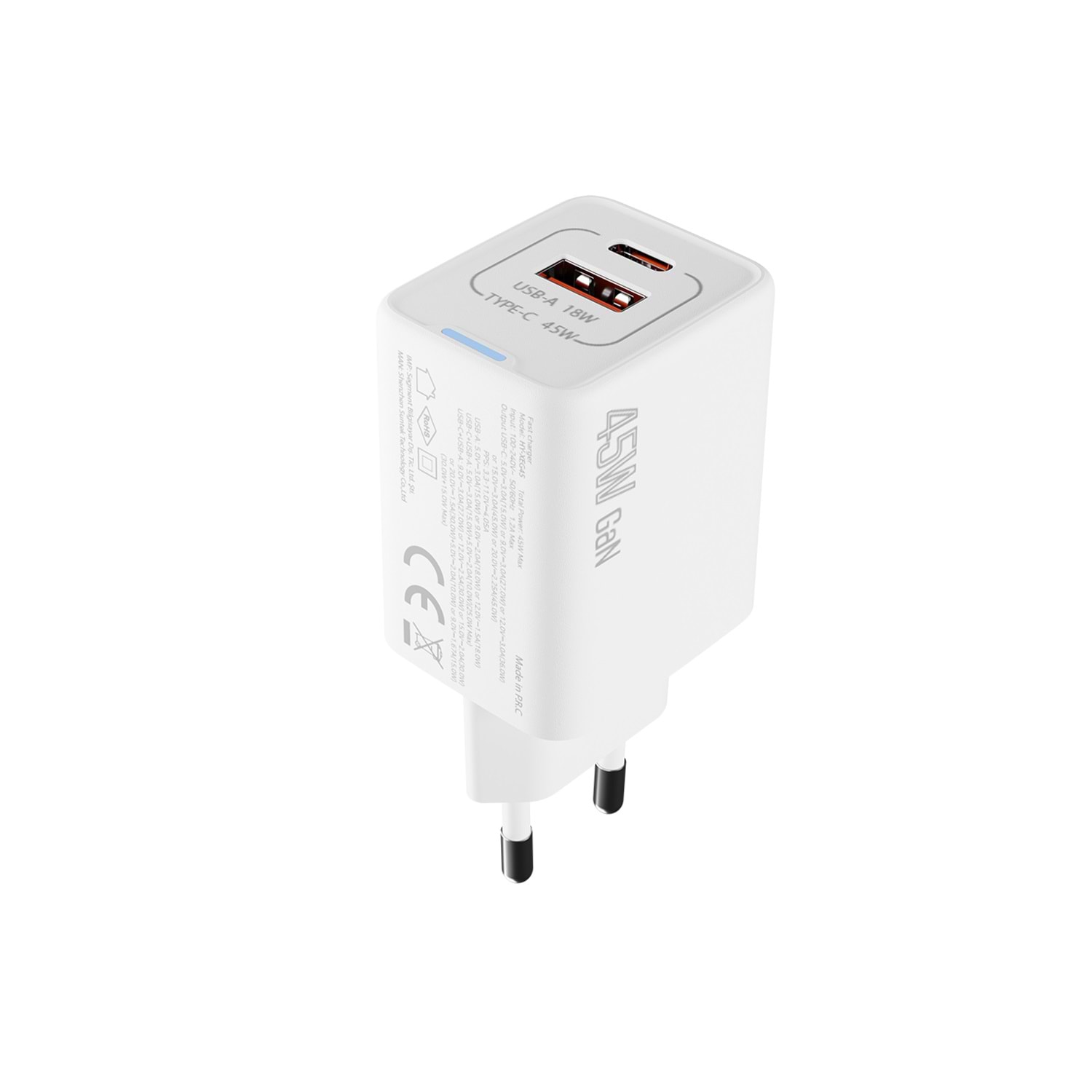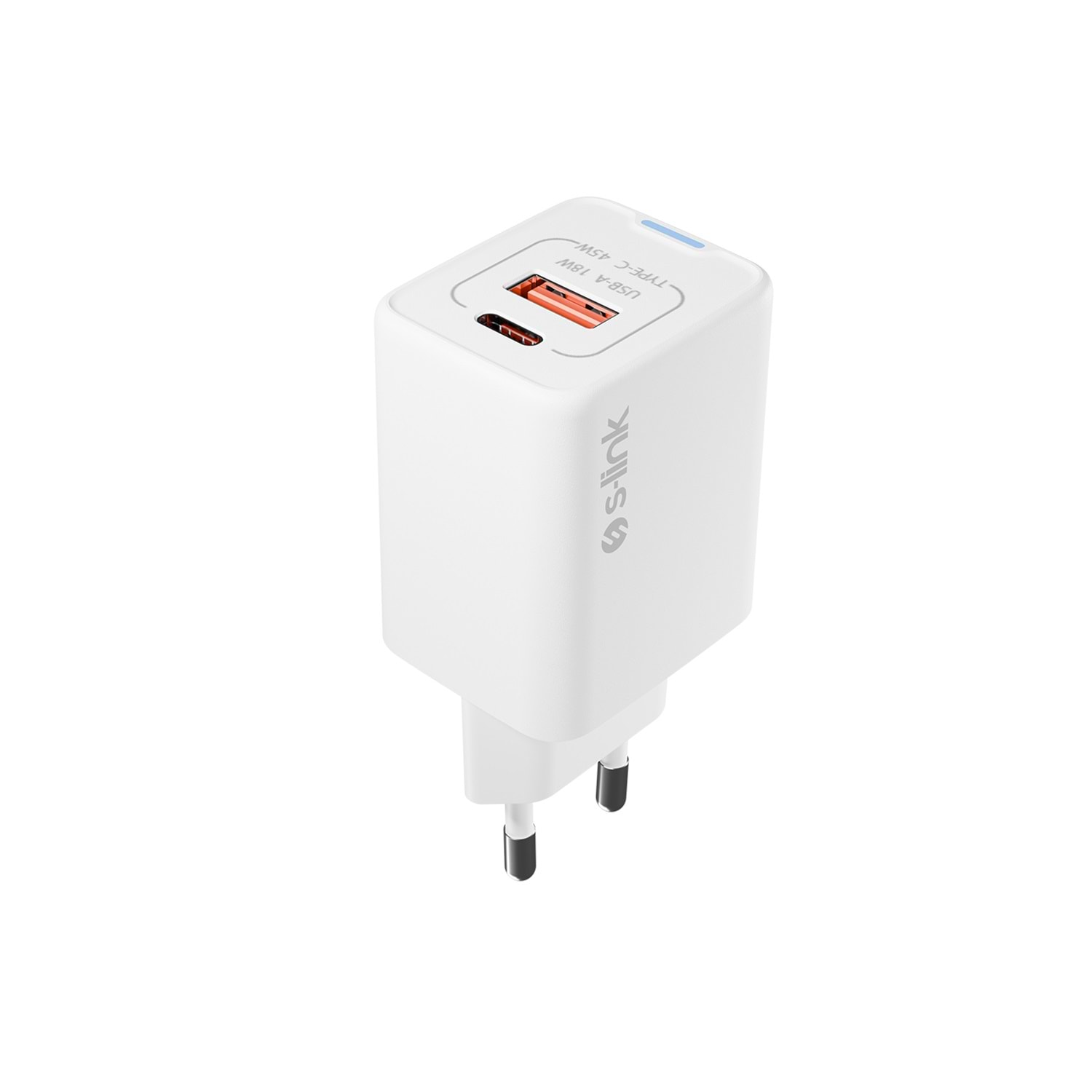 S-link SL-ECG45 Type USB-C 45W PD + 18W USB QC 3.0 GAN Beyaz Hızlı Ev Şarj Adaptörü