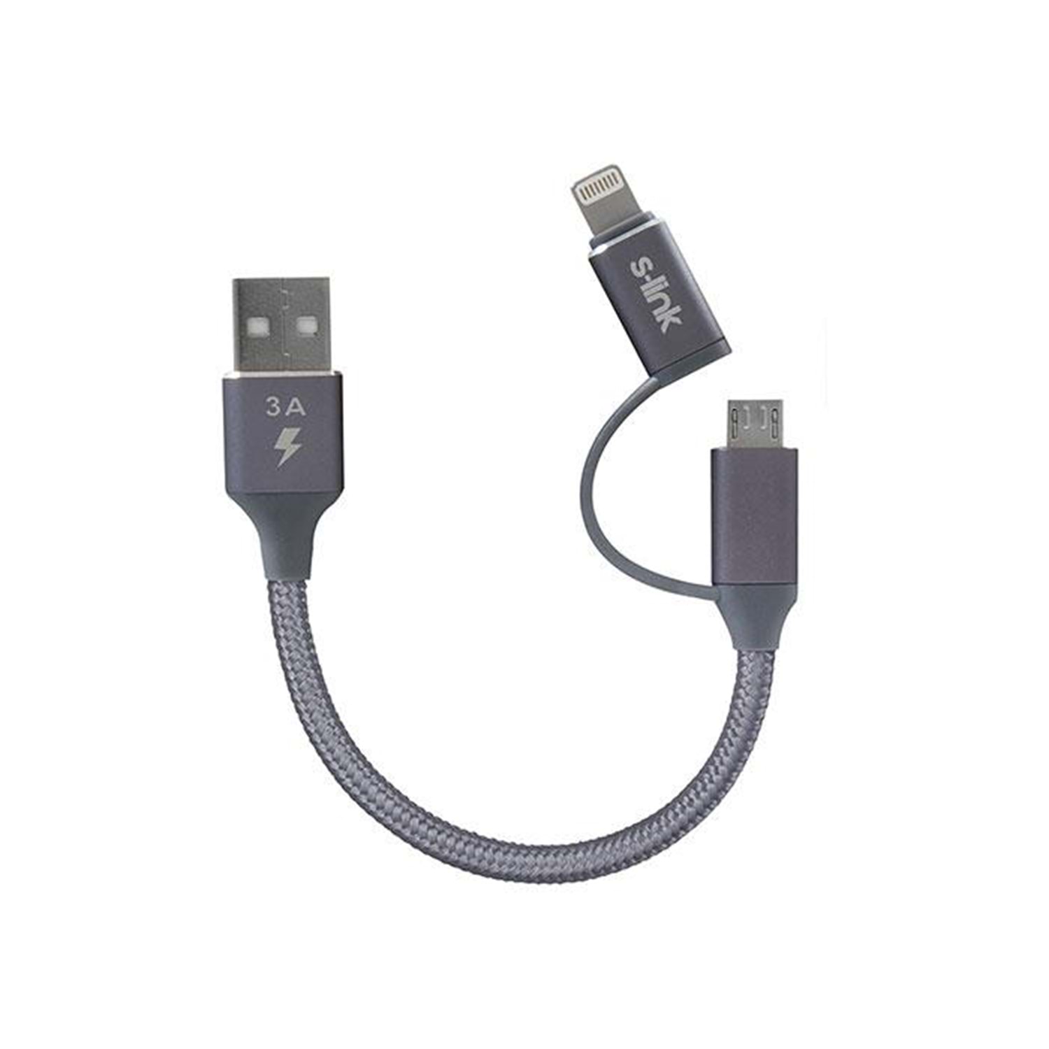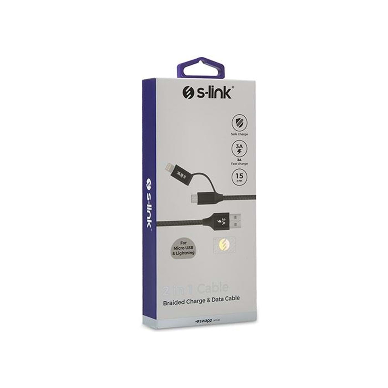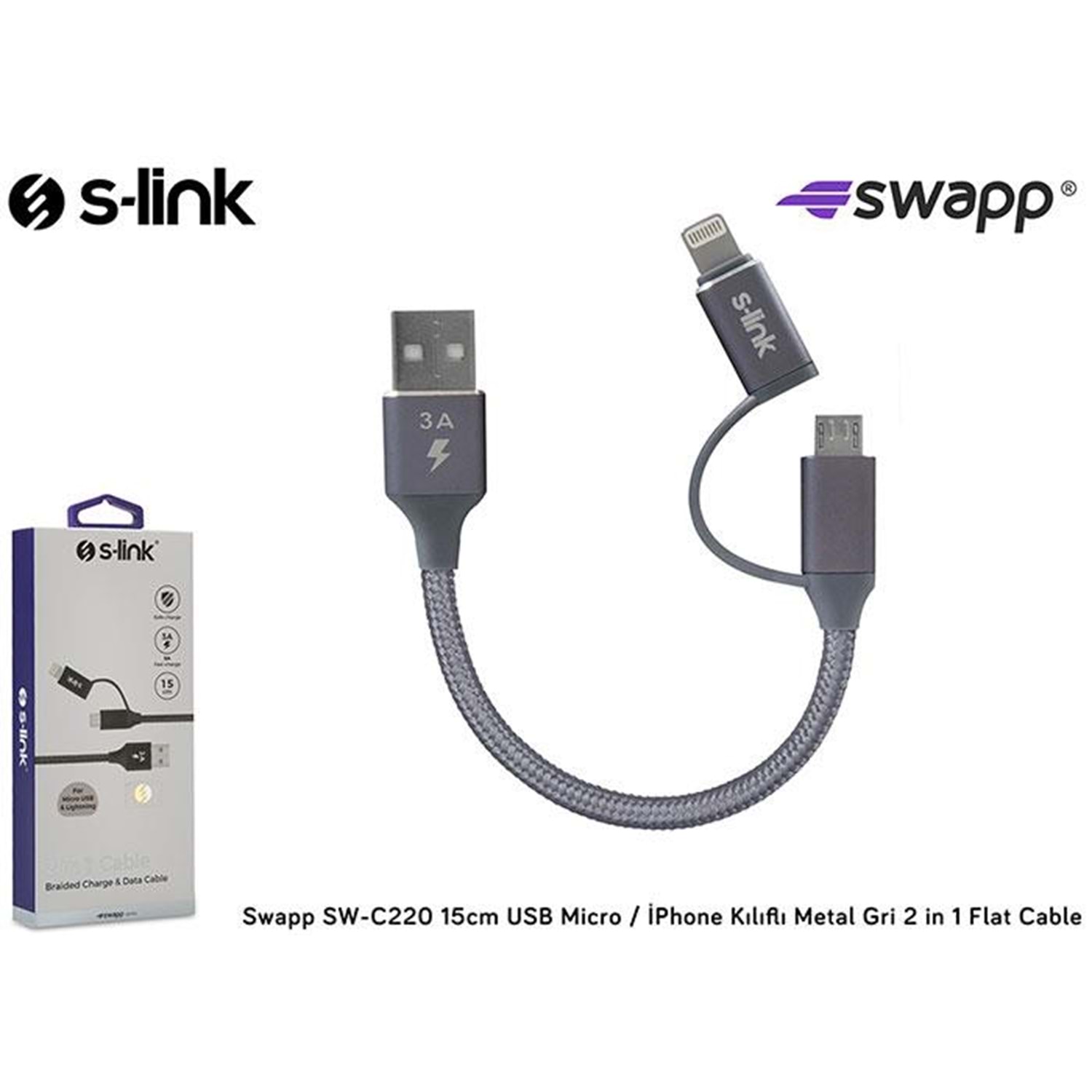 S-link Swapp SW-C220 15cm USB Micro/İPhone Kılıflı Metal Gri 2 in 1 Flat Cable