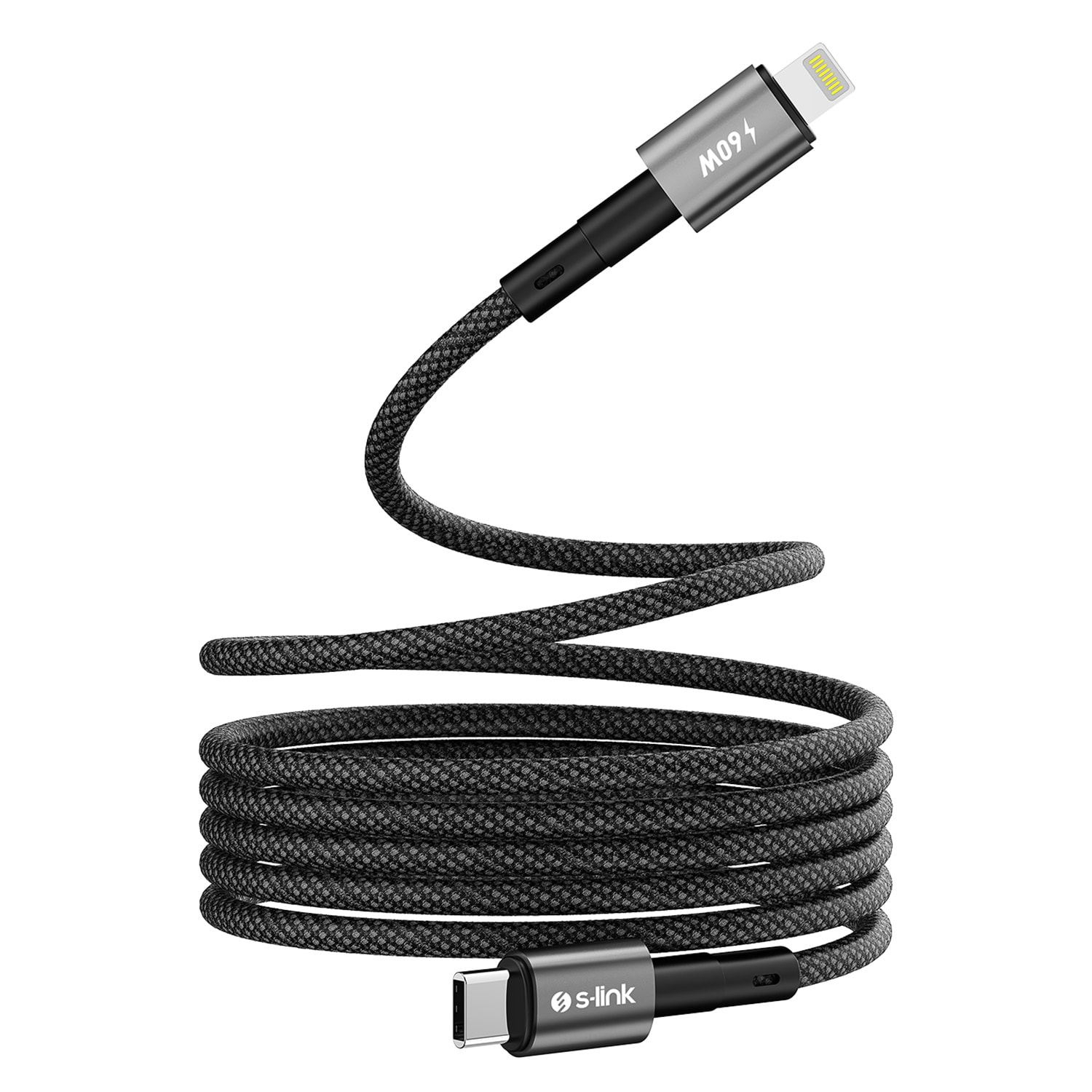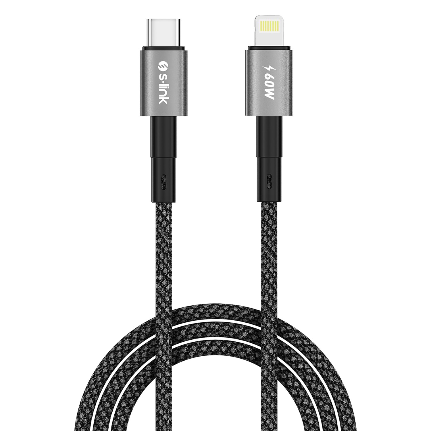 S-link Armor MCL-01 30W 1m Type-C to Lightning PD Örgülü Metal Başlıklı Siyah Hızlı Şarj Kablosu